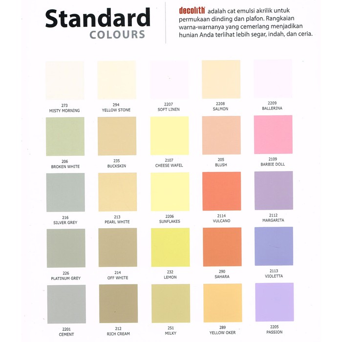 Katalog warna cat decolith 2019. We did not find results for: Maybe you would like to learn more about one of these? Check spelling or type a new query.
